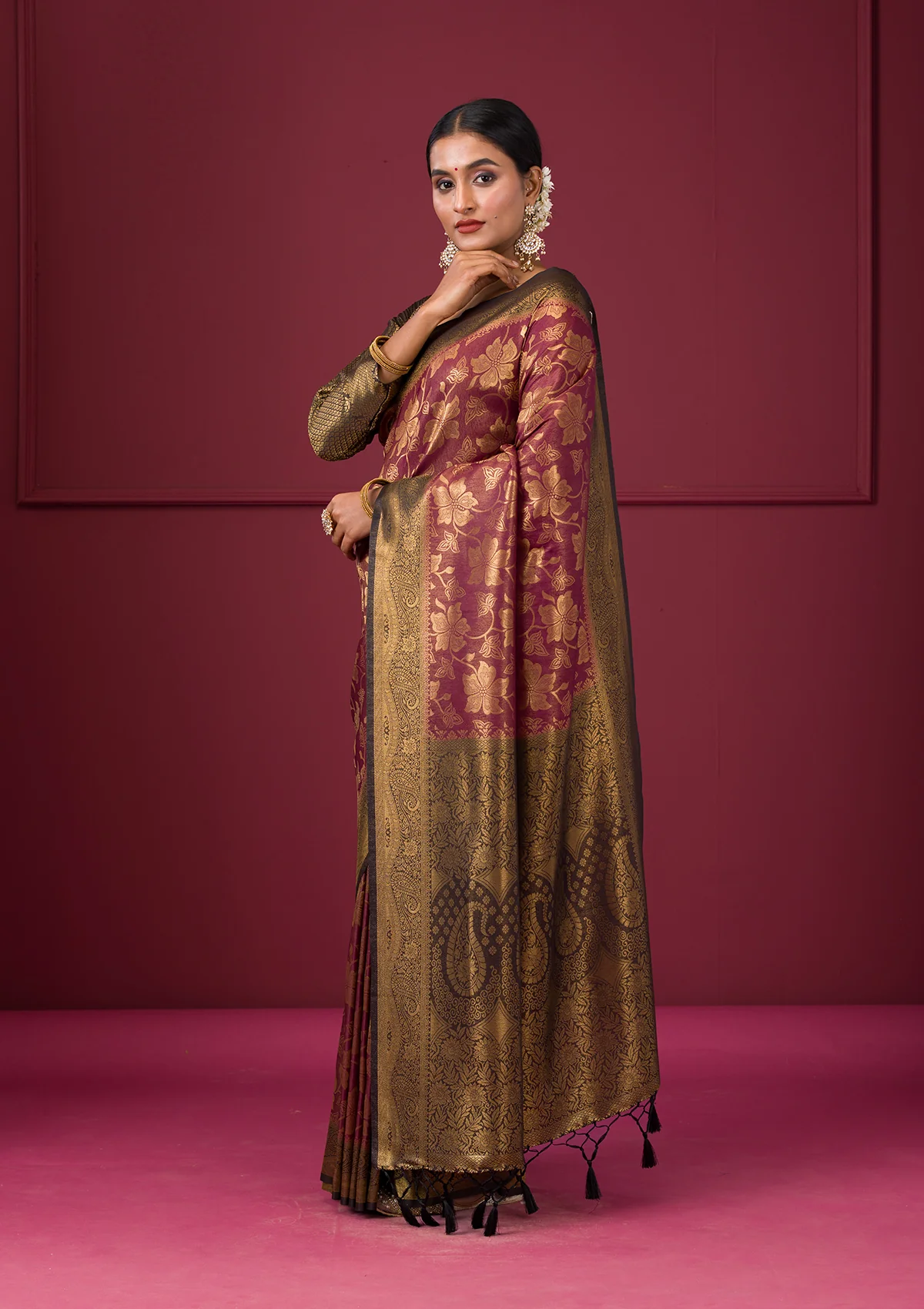 Maroon Zariwork Soft Silk Saree
