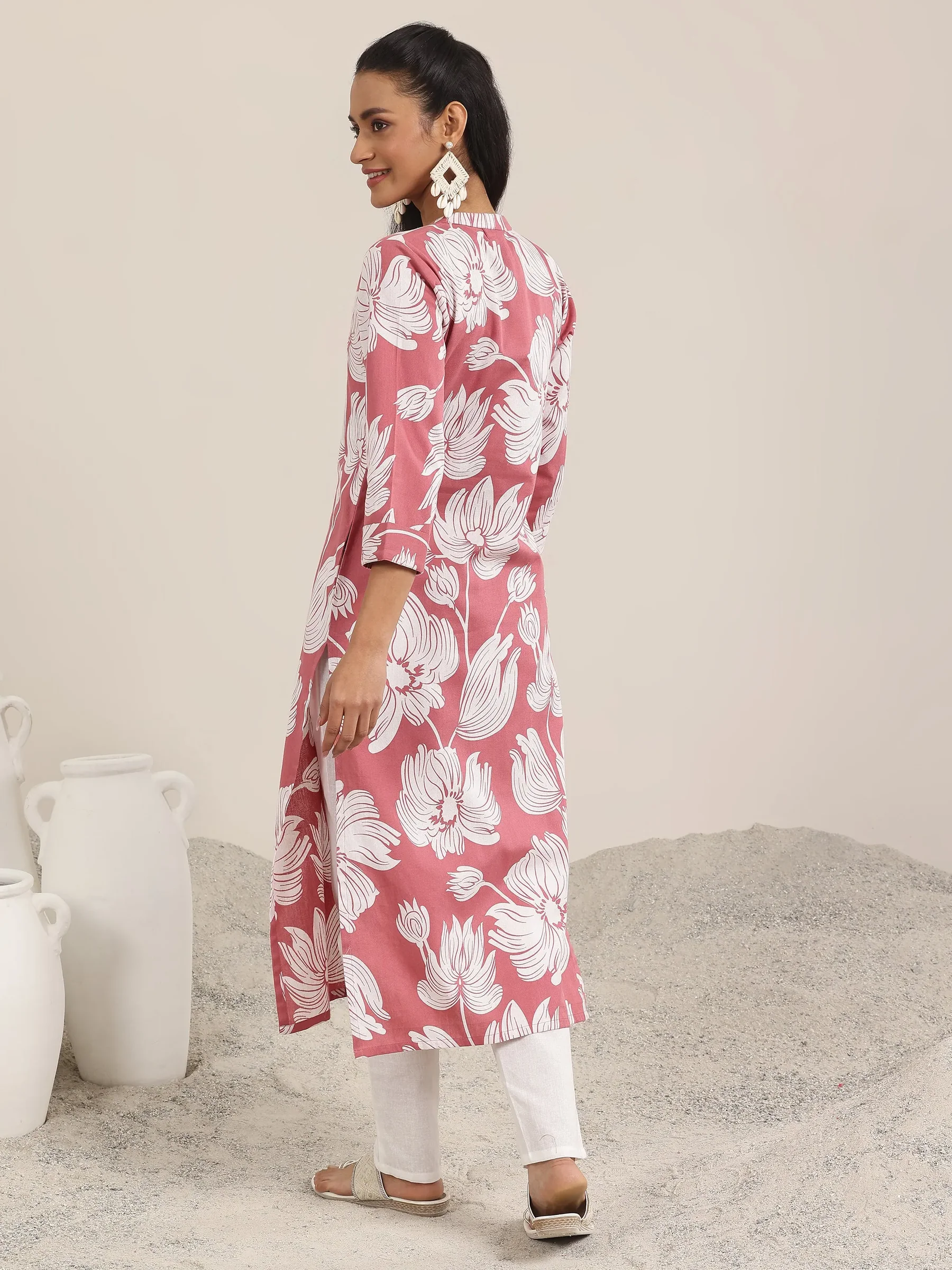 Peach Printed Cotton Straight Kurta