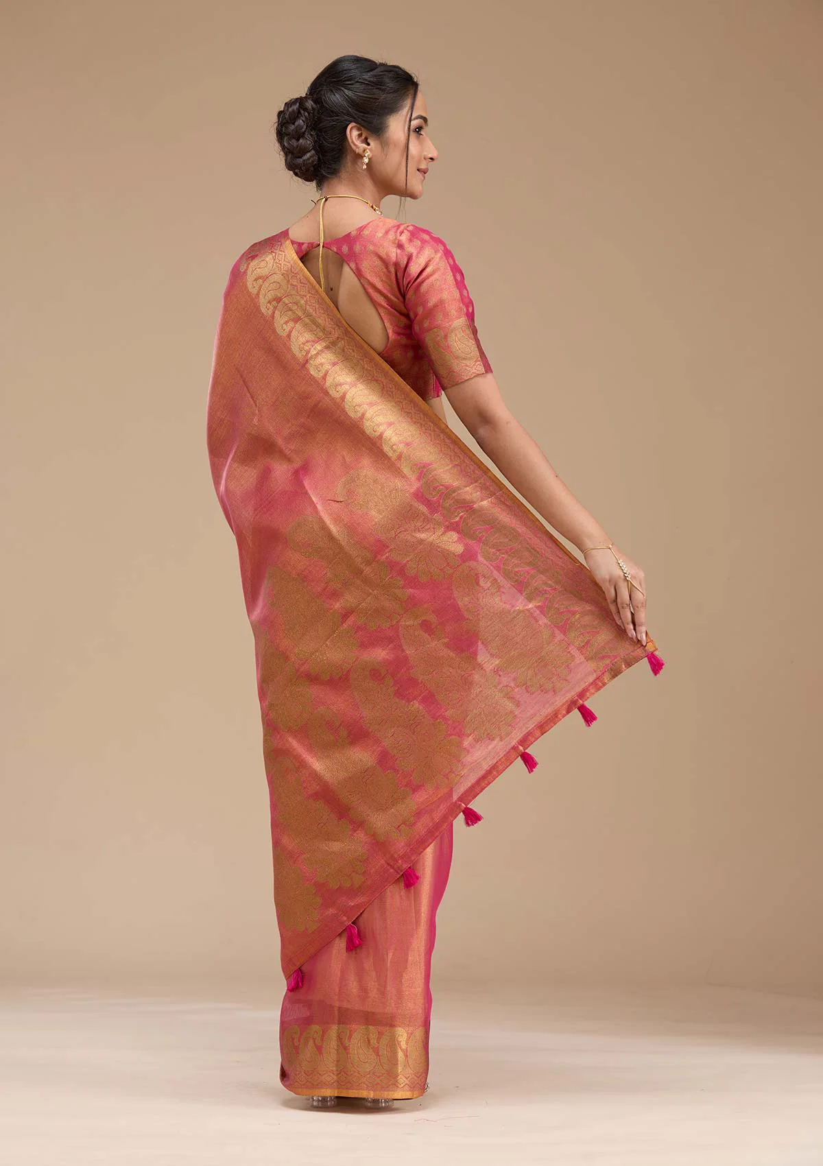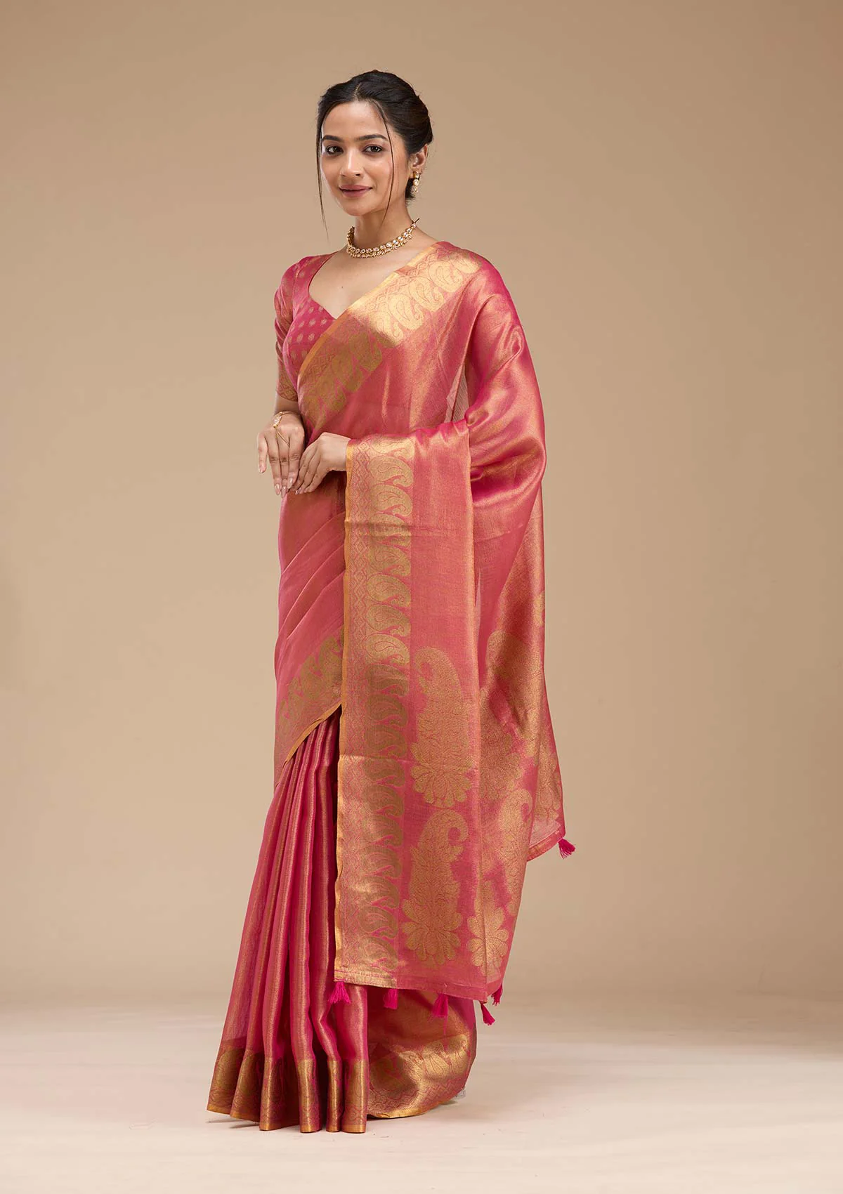 Pink Zariwork Tissue Saree